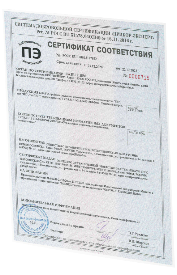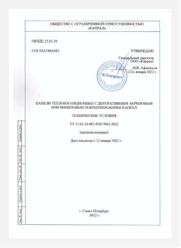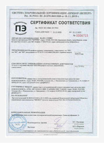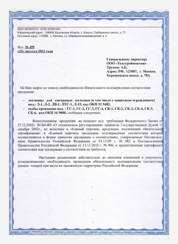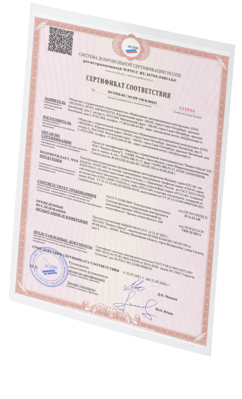 Документ, подтверждающий соответствие различным ГОСТам или иной технической документации.