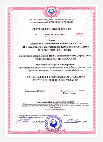Документальное подтверждение того, что система менеджмента качества в компании полностью соответствует определенному набору стандартов.