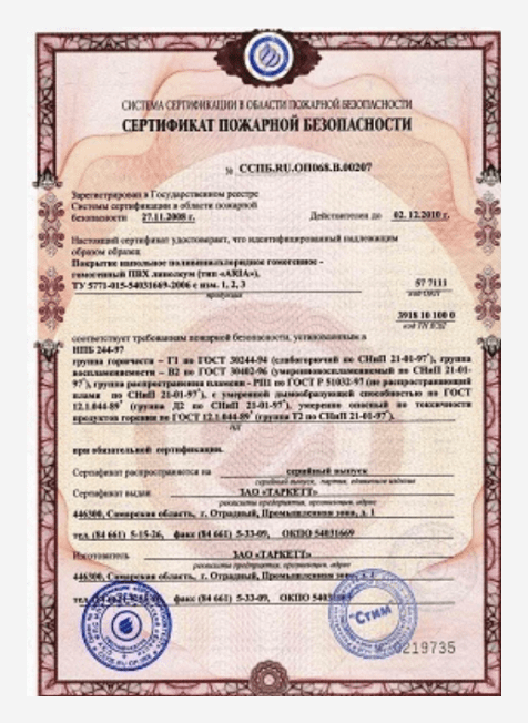 Пожарный сертификат соответствия подтверждает факт соответствия товара стандартам в области пожарной безопасности (ПБ), при этом его можно оформить на партию или даже серию изделий. Действие сертификата ПБ – от 1 до 5 лет.